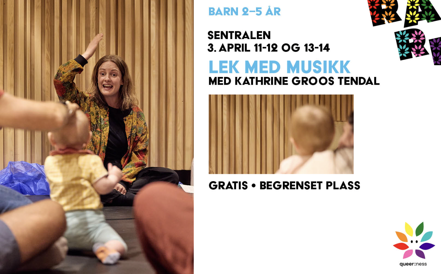 Musikklek og babysang er et perfekt innslag i arrangementer til barn og unge - det er deltagende og gøy for både små og store! Gjennom regler, sanger og bevegelsesaktiviteter barna er med på å forme leker vi med musikkens grunnelementer og vår egen fantasi. Innhold og form kan tilpasses aldersgruppe og hva dere ønsker.