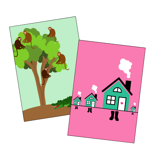 Kortene har bilde på en side, og tekst med lenke til QR-kode på baksiden. Du scanner koden med mobilen og for opp video - slik kan du enkelt se hvordan aktiviteten gjøres. Du printer selv filene i A4 format, bretter i to med bildesiden ut og klipper til margene. Anbefaler å laminere de for å være mer slitesterke i bruk.