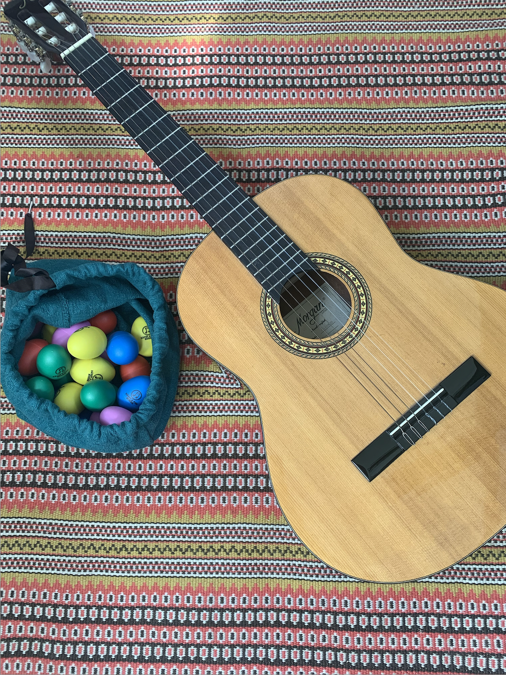 Om noen kan spille noen akkorder på gitar er det et godt samlende instrument som er lett å ta med rundt og støtter sangen og gir tonearten.